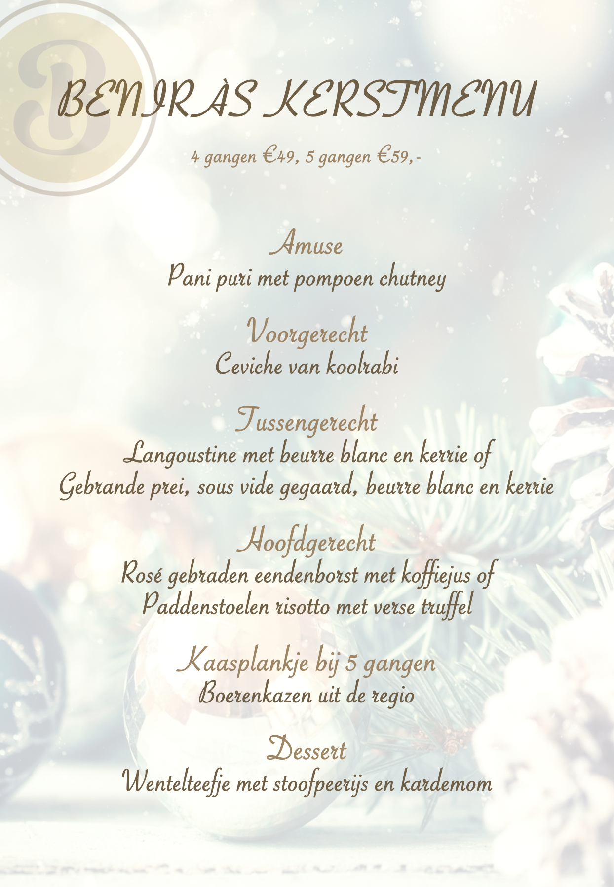 Ook dit jaar kunt u de prachtige uitvoeringen weer combineren met heerlijk en ontspannen dineren bij Beniràs. Voor de bezoekers van beide concerten (2 maart in de Hooglandse Kerk en 28 en 29 maart in de Pieterskerk) zorgen we dat u kunt voor- of nagenieten van onze heerlijke shared dining gerechten of van ons veelgeprezen Chefsmenu. Komt u voorafgaand aan de uitvoering, dan zorgen wij dat u ruim op tijd ter plaatse bent. Wilt u nagenieten, dan houden we een mooie plek voor u vrij.